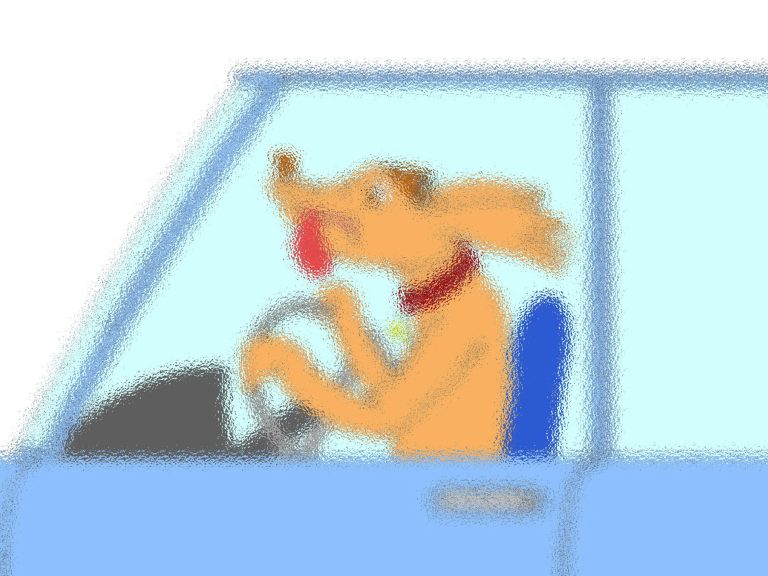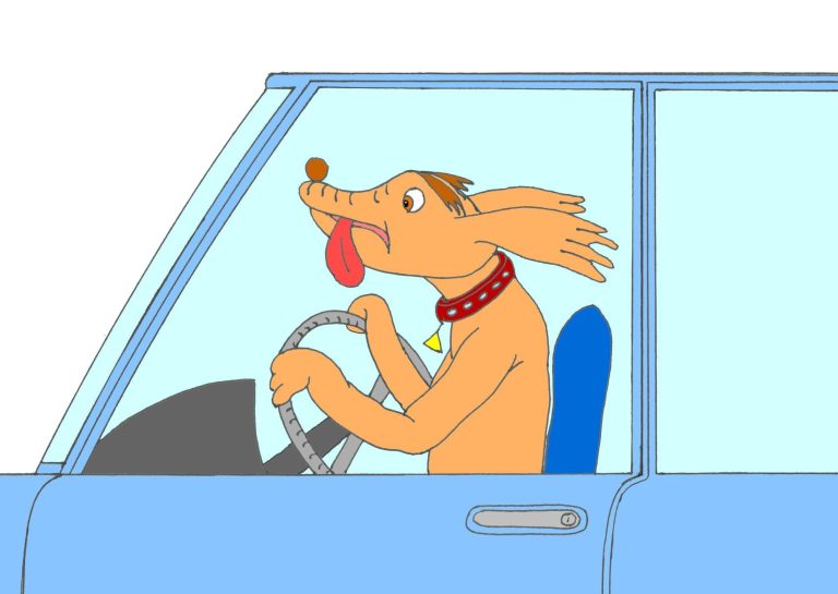 Dort saß ein großer Hund auf dem Fahrersitz mit beiden Vorderpfoten am Lenkrad, so als wolle er gerade wegfahren. Ich ging zum Rondell zurück. Am Rande setzte eine Frau gerade neue Pflanzen ein. Ich fragte sie: „Ist das Ihr Auto? Ihr Hund fährt es gleich weg.“ Das war genau die richtige Ansprache. Sie berichtete lachend, dass ihr Hund sehr gern im Auto sitze, nicht nur während der Fahrt. Dann fügte sie verschmitzt hinzu: „Vor einiger Zeit beschwerte sich ein älterer Nachbar bei mir, weil ich aus dem Auto heraus seinen Gruß nicht erwiderte.“
