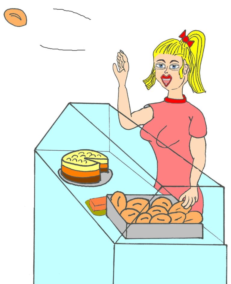 Kurz vor dem Bäckerladen ließ der Mann seinen Golden Retriever von der Leine. Er (der Hund) lief zum Tresen, richtete sich auf den Hinterbeinen auf, hob die Vorderpfoten, nahm also die bei Hunden übliche Mach-schön-Haltung ein. Ich stand rechts am Tresen und beobachtete das Geschehen: Die junge Verkäuferin nahm ein Brötchen und warf es schwungvoll über den Tresen. Blitzschnell schnappte der große Hund zu, zwei, drei Bisse, und das Brötchen war verschwunden.