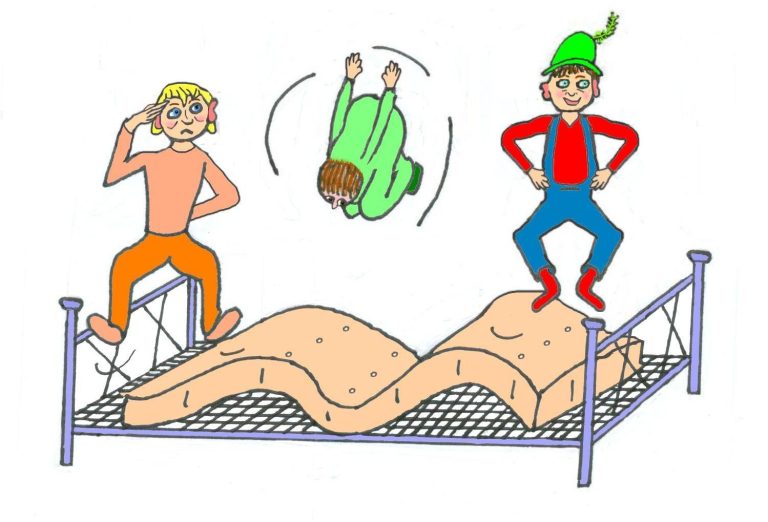 Die Springer klärten mich auf: „Wir haben doch den voll coolen Film mit dem fliegenden Bettgestell gesehen. Wir wollen doch bloß probieren, ob sich unsere Betten abheben.“ Eine andere Stimme war zu hören: „Vielleicht können wir mit unseren voll geilen Bettgestellen fliegen.“ (Anmerkung: Um einer Aussage besonderes Gewicht zu geben, wurde damals gern „voll“ hinzugefügt. Das Wort „geil“ kam ohnehin in jedem zweiten Satz der Schüler vor.)