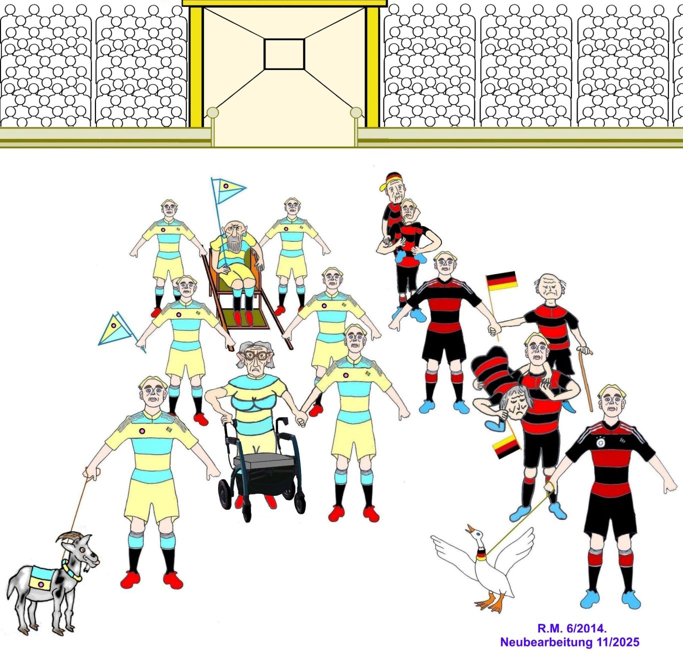 Angesichts dieses dramatischen demografischen Wandels ist es dringend geboten, dass mindestens bei jedem zweiten Bundesligaspiel und bei Länderspielen Senioren und Seniorinnen die Rolle der Einlaufkinder übernehmen.