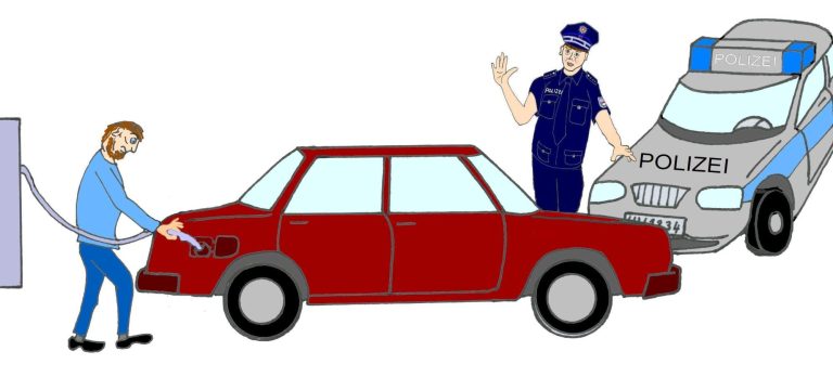 Der Polizist stieg aus, setzte seine Dienstmütze auf, zentrierte sie, wartete, bis ich den Tank gefüllt hatte, kam auf mich zu, blieb stehen, sah mich freundlich an und sagte: „Guten Tag, Herr May, kennen Sie mich noch?“ „Guten Tag, Jürgen. Natürlich kenne ich dich noch.